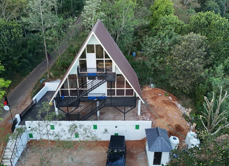 At Idukki Nook, your stay is a blend of comfort, calm, and natural beauty. Our unique A-Frame House is designed to immerse you in the serenity of the hills while offering modern comforts.